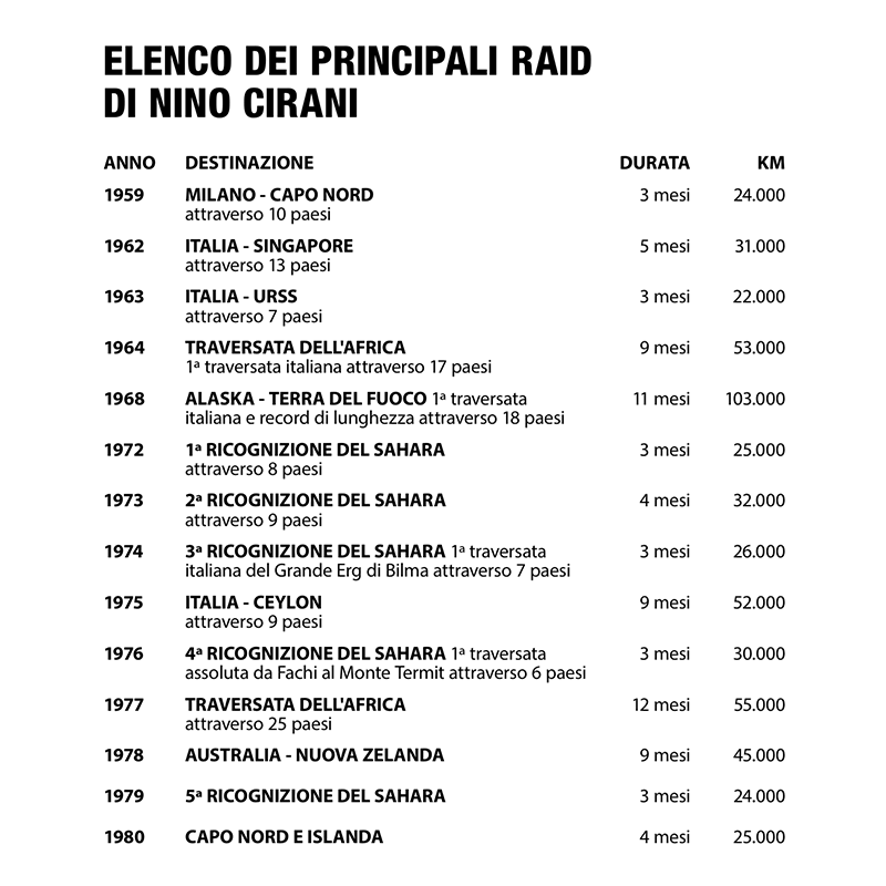Es war 1964 - wie jedes Jahr stellte ich die Air-Camping® Zelte auf der Mailänder Messe aus, dass sich mir eine Person vorstellte: « ... Ich heiße Nino Cirani und bin Journalist und Fotografich bin gerade dabei eine Reise mit meinem eigenen Land Rover und einem von Freunden zu organisieren.